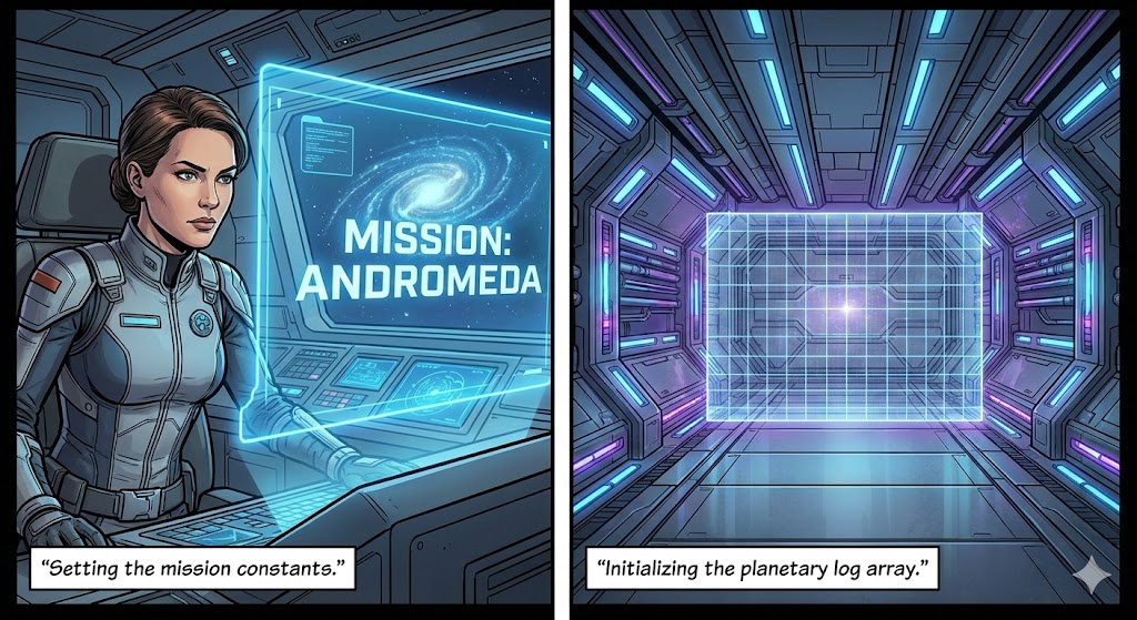 constvslet: Think ofconstas the ship’s hull—it’s permanent. Use it for data you don’t want to accidentally overwrite.letis like your fuel gauge—it changes constantly.- Objects